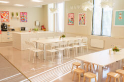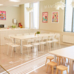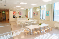 - 2 suurt söögilauda (üks lastele, teine täiskasvanutele). Kokku 30 tooli (14 täiskasvanutele, 16 lastele)