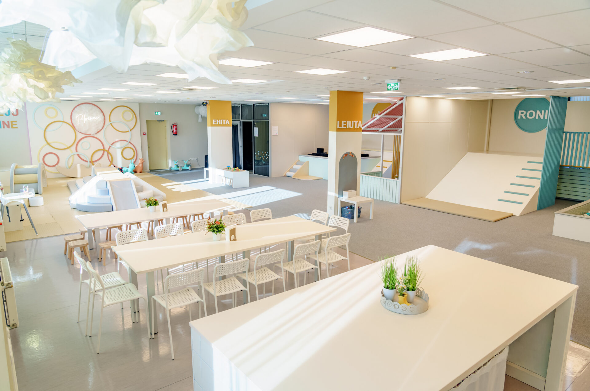- 2 suurt söögilauda (üks lastele, teine täiskasvanutele). Kokku 30 tooli (14 täiskasvanutele, 16 lastele)